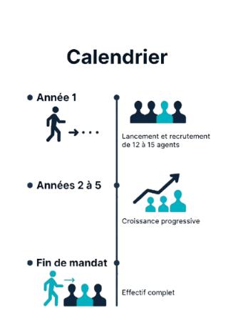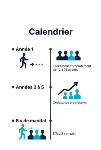 Montée en puissance complète d’ici la troisième année du mandat.