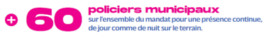 Recruter 60 policiers municipaux supplémentaires sur la durée du mandat afin de :