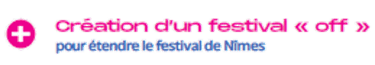 Créer un festival « Off » du Festival de Nîmes, organisé en parallèle de la programmation principale, afin de :
