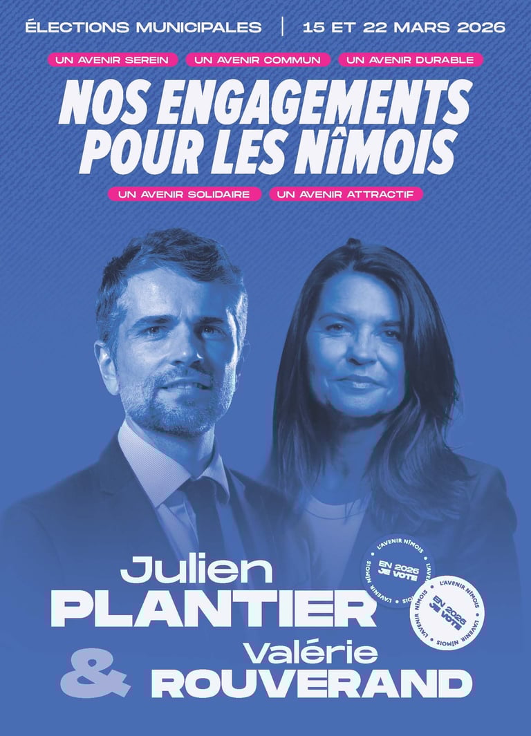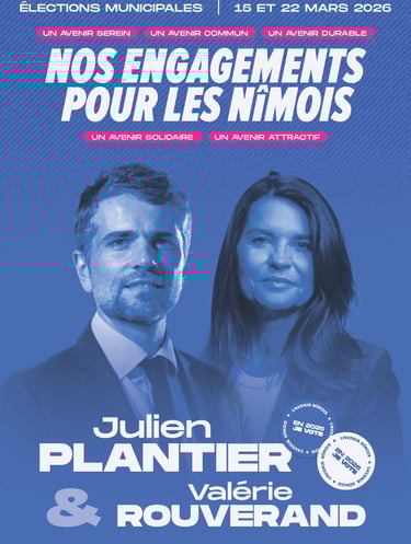 © 2026. Tous droits réservés. Ce site est édité dans le cadre de la campagne pour les élections municipales de la ville de Nîmes 2026. Les données collectées sont utilisées uniquement dans le cadre de la campagne municipale de Julien PLANTIER, conformément au Règlement Général sur la Protection des Données (RGPD) et à la loi Informatique et Libertés, chaque utilisateur dispose d’un droit d’accès, de rectification, d’opposition, de limitation et de suppression de ses données. Ces droits peuvent être exercés en écrivant à :